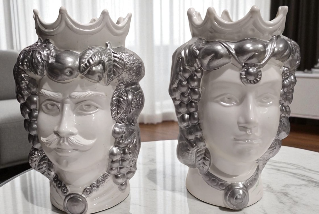 Mori Siciliani 32 cm in Ceramica – Coppia Re e Regina Decorati a Mano