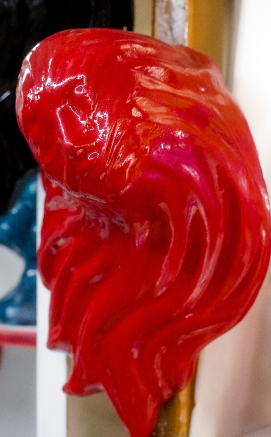 Questa scultura è realizzata in cemento porcellanato di alta qualità, lavorata e rifinita a mano, disponibile in due versioni: rossa con smalto lucido vivace e bianca elegante e luminosa. Le linee fluide e sinuose ne esaltano la raffinatezza, rendendola un complemento d’arredo unico.