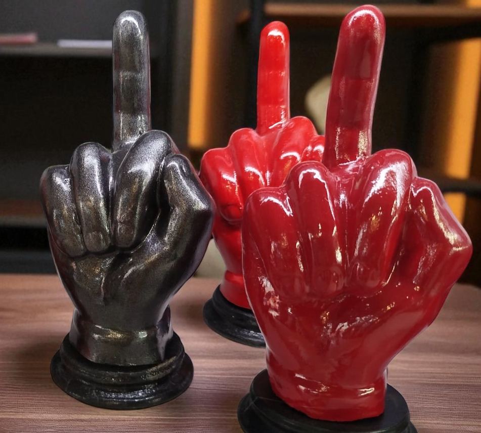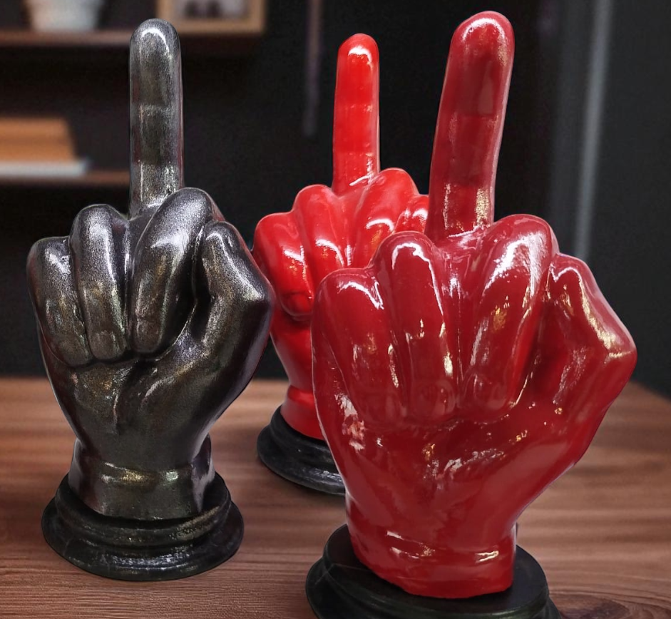 Un oggetto ironico e d’impatto, perfetto per dare un tocco originale alla casa o all’ufficio. Questa scultura artigianale in cemento porcellanato è disponibile in due varianti colore: rosso lucido e nero antracite metallizzato. Il gesto provocatorio del dito medio diventa un complemento d’arredo moderno e spiritoso, ideale anche come regalo divertente.