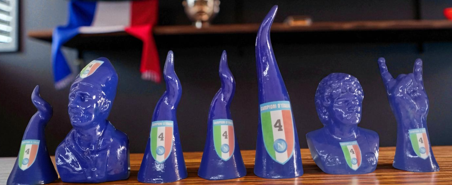 Sculture e corni Napoli Campioni d’Italia in cemento porcellanato artigianale