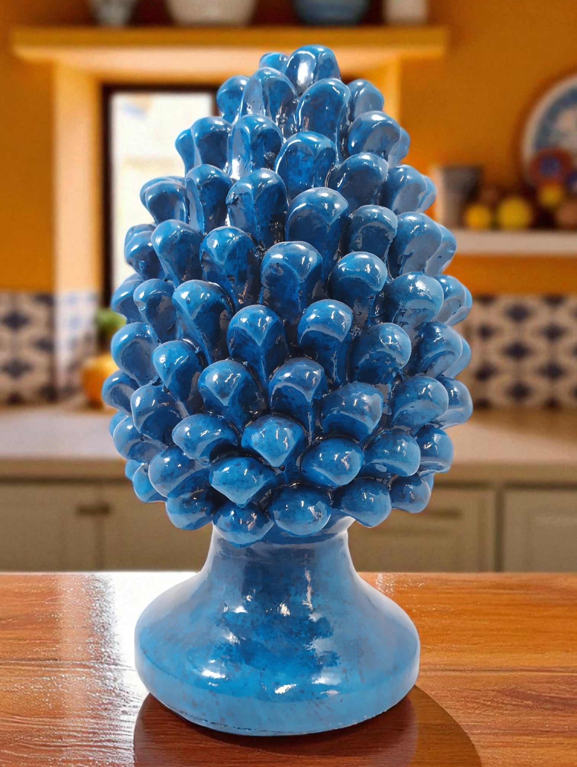 La pigna in ceramica smaltata da 30 cm è un raffinato oggetto decorativo della tradizione mediterranea, simbolo di fertilità, abbondanza e buon auspicio. Realizzata e rifinita a mano da maestri ceramisti italiani, ogni pigna è un pezzo unico, frutto di un sapere antico e autentico.